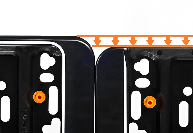 Perfekte Passung - passt auch in vertiefte Kennzeichen-Aufnahmeflächen, die für ein 520mm Standard Kennzeichen mit den üblichen Toleranzen vorbereitet sind