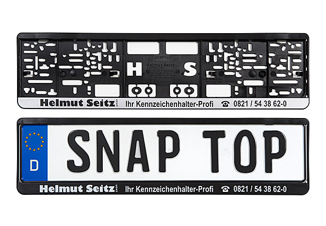 Snap Top - der AußergewöhnlicheBei unserem Kennzeichenhalter Modell Snap Top wurde besonders auf ein optimales Preis - Leistungsverhältnis geachtet, ohne dass Abstriche in der Funktionalität und Alltagstauglichkeit gemacht werden müssen.