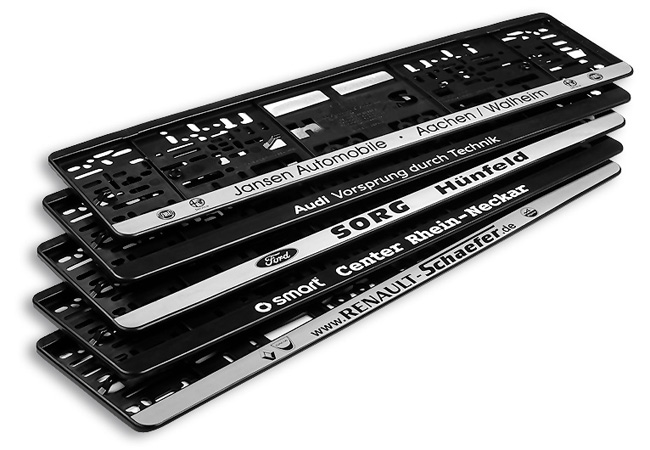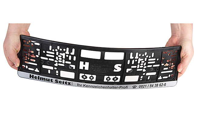 Unser Standard - langlebige Werbeschriftzüge mit 3 Jahren Garantie auf deren Haltbarkeit, ständig auf die aktuellen Fahrzeugtypen abgestimmtes Kennzeichenverstärker Lochbild, integrierte Beilagscheiben, witterungs-, UV- , säurebeständige sowie schlagfeste und waschanlagenresistente Kunststoffe, kostenloses, beiliegendes Öffnungswerkzeug (1x pro VE). Der Kennzeichenhalter kommt einteilig zu Ihnen, dies erspart Montagezeiten, Ärger und Lagerkosten.